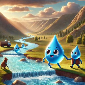 روزی روزگاری در دره ای آرام، قطره ای آب به نام آکوا زندگی می کرد. او به همراه دوستانش آب پاک و زلالی بودند که در دره کوهستانی زیبایی به شکل نهر شفاف جریان داشت، آنها از جنگلها عبور میکردند و به دریاچه ای در کنار شهری کوچک میرسیدند. مردم شهر کوچک از آب دریاچه زیبا به عنوان منبع آب شرب استفاده می کردند. مأموران آب برای تأمین آب آشامیدنی مردم، آب را از دریاچه تا مخزن آب می بردند. آنجا آب گندزدایی می شد و از طریق شبکه لوله کشی به خانه های شهر می رسید . مردم از آب پاک به آسانی استفاده می کردند و تبدیل به یک امر عادی شده بود.