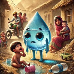 زندگی ساده و آرام بود تا اینکه در یک روز سرنوشت ساز زمین به شدت تکان خورد و زمین لرزه بزرگی دره را لرزاند. خانهها فرو ریخت و جویبارها که زمانی آرام بود به سیلابی گل آلود تبدیل شدند. شهر ویران شده بود و لوله های آب شکسته و زیر آوار مانده بود. منبع آب به گل و لای آلوده شده بود. آکوا که قطره ای که شاد بود. اکنون ناراحت خود را در میان خرابه ها یافت. مردم ترسیده و گیج بودند. هیچ آب پاکی در دسترس نبود. آکوا شاهد ویرانی خانه ها و نیاز شدید مردم به آب تمیز بود.