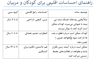 کودکان و نوجوانان در سنین مختلف احساسات متفاوتی تجربی می کنند. احساسات اقلیمی شامل طیف وسیعی از احساساتی است که مردم در پاسخ به تغییرات اقلیمی تجربه میکنند، از جمله احساسات منفی و مثبت. این احساسات میتوانند شخصی، اجتماعی یا حتی معنوی باشند و اغلب با نگرانیهایی در مورد آینده سیاره و تأثیر بشریت بر آن در هم تنیده شدهاند.