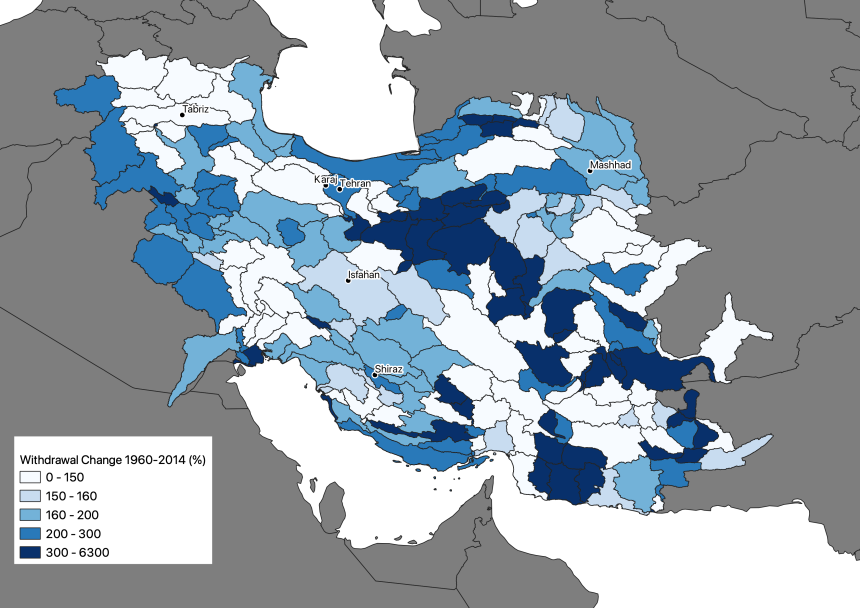 در بخش دیگری از کتاب به ارتباط میان آب و ساختار سیاسی در طول تاریخ ایران پرداخته میشود: اینکه چگونه مدیریت منابع آب در شکلگیری سازمان سیاسی نقش داشته و چگونه سازمان سیاسی، مدیریت منابع آب را جهت میداده است. این کتاب به الگوی تاریخی جدیدی میرسد که آن را “فروپاشی هیدرولیکی” نام نهاده است. نویسنده به این نتیجه میرسد که چرخهی شکلگیری، بلوغ، پیری و مرگ دولتها در تاریخ ایران، ارتباط نظاممندی با مدیریت منابع آب داشته است. مهمترین منبع درآمد دولتهای تاریخی، مالیات کشاورزی مبتنی بر آبیاری بوده است. بنابراین توسعهی بروکراتیک مدیریت منابع آب به افزایش درآمد دولت منتهی میشده است. اما معمولاً این توسعه، از حد بهینه فراتر میرفته و در نتیجه، دو فرایند موازی نامطلوب پدیدار میشده است: نخست افزایش فساد در سازمان اداری مدیریت منابع آب، دوم رشد بیرویهی اشرافیت درباری و نظامی. به این ترتیب هزینههای دولت افزایش مییافته است و برای تأمین این هزینهها به افزایش مالیات و فشار بیشتر بر حقابهبران متوسل میشدهاند. این فشارها در نهایت از ظرفیت منابع آب فراتر رفته و به مهاجرت و تخلیهی واحدهای کشاورزی منتهی میشود. در این مرحله، درآمد دولت رو به کاهش میگذارد، اشرافیت عریض و طویل با خزانهی خالی روبرو میشود و گسلهای سیاسی در درون دربار فعال میشوند. در امتداد همین گسلها، رقابتهای سیاسی در نهایت به فروپاشی دولت و ظهور دولت جدید منتهی میشود. دولت جدید نیز همان چرخهی حیات را از سر میگیرد. نویسنده برای اثبات فرضیهی خود به دهها نمونهی تاریخی اشاره میکند.
